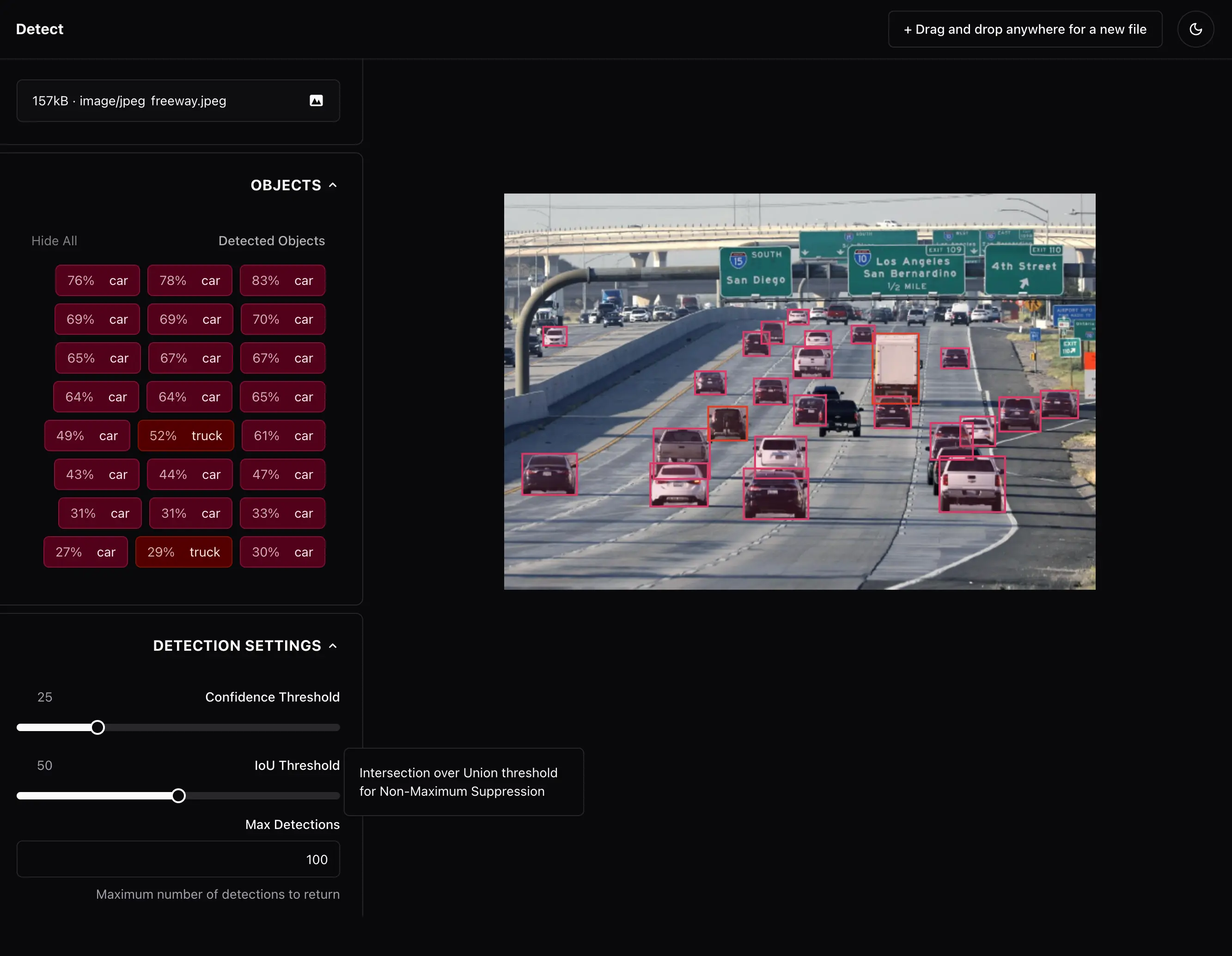 An object detection application in the browser with YoloV8n and customizable with model parameters. Try it out yourself!
